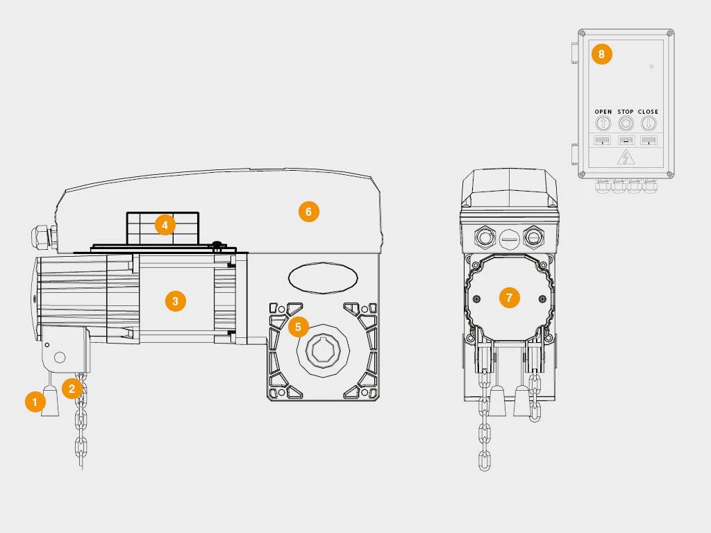 8. Перед запуском электрического привода исключите присутствие посторонних предметов в зоне работы устройства.