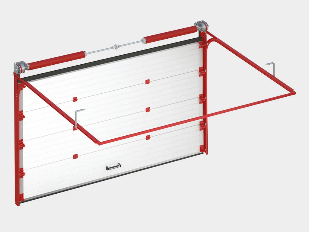 - Система уравновешивания полотна ворот — пружинно-торсионный механизм (устройство защиты от разрыва пружины является опцией)
